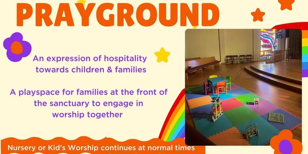 In addition to the Nursery & Kids' Worship, we are launching a PrayGround at the front of the sanctuary as a new way to offer hospitality to children and families. This is a space where children can be with their parents in worship as they both play and engage as an integral and welcome part of the faith community.